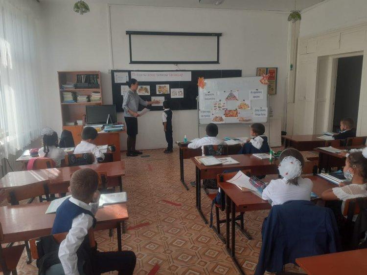 "Жамбыл облысы әкімдігінің білім басқармасы Мойынқұм ауданының білім бөлімінің Қ.Рысқұлбеков атындағы орта мектебі" коммуналдық мемлекеттік мекемесінде Ыстық тамаққа байланысты , дұрыс тамақтану тақырыбына тәрбие сағаты » Мойынқұм ауданы әкімдігінің білім бөлімінің Қ.Рысқұлбеков атындағы орта мектебі коммуналдық мемлекеттік мекемесі